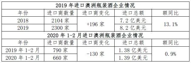 進口商的流失,直接導致2019年和今年1-2月法國瓶裝酒進口額的大幅下滑,而逆勢上行的澳洲酒實現反超。這在一定程度上說明,國內進口葡萄酒市場需求更趨多元化或將帶來一段時期內市場結構的持續調整。