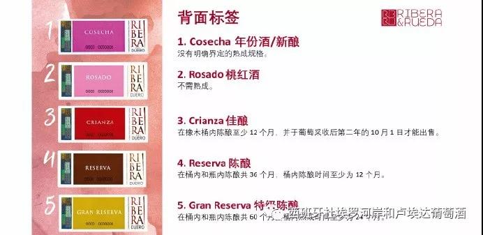 眾所周知,西班牙葡萄酒素以陳年潛力見長,杜埃羅河岸更是將這一特點發(fā)揮到極致。根據(jù)陳年時間的不同,杜埃羅河岸的葡萄酒可依次分為年份酒/新釀(Cosecha)、桃紅酒(Rosado)、佳釀(Crianza)、陳釀(Reserva)和特級陳釀(Gran Reserva)四個等級。