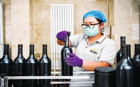 近年來,寧夏大力推進葡萄酒產(chǎn)業(yè)發(fā)展,走出了一條葡萄酒產(chǎn)業(yè)與文化旅游產(chǎn)業(yè)融合發(fā)展之路。截至2019年底,寧夏葡萄種植面積達到57萬畝,現(xiàn)有酒莊211家,產(chǎn)業(yè)綜合產(chǎn)值達260億元。圖為寧夏志輝源石酒莊工作人員在葡萄酒生產(chǎn)線上忙碌。