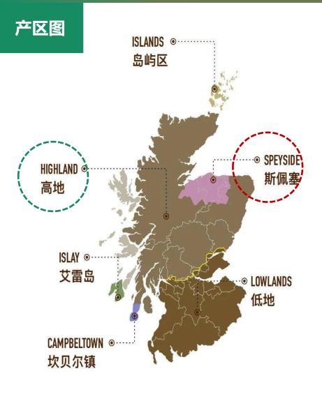 位于蘇格蘭東北部,環(huán)繞著斯佩河,這里擁有蘇格蘭數(shù)量很多的釀酒廠,斯佩賽威士忌以其復雜和豐富而知名,口感溫和,花香果香豐富濃郁。
