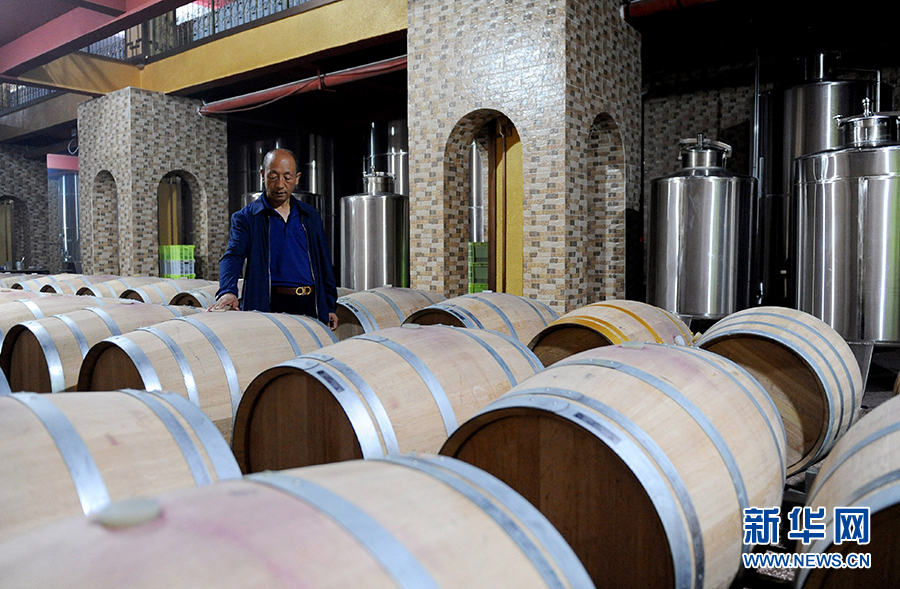 8月21日,吳忠市紅寺堡區(qū)東方裕興酒莊工作人員在檢查葡萄酒窖藏情況。近年來,地處賀蘭山東麓的寧夏吳忠市紅寺堡區(qū)利用地理位置、土壤、氣候等優(yōu)勢,大力發(fā)展葡萄酒產業(yè),依托“企業(yè)+基地+農戶”的合作模式,形成集釀酒葡萄種植、葡萄酒生產、銷售、葡萄酒文化旅游于一體的產業(yè)鏈。目前,紅寺堡區(qū)釀酒葡萄種植面積10.6萬畝,注冊葡萄酒企業(yè)28家,產值達4億元,葡萄酒產業(yè)成為當?shù)卦鍪崭幻竦闹鲗Мa業(yè)。